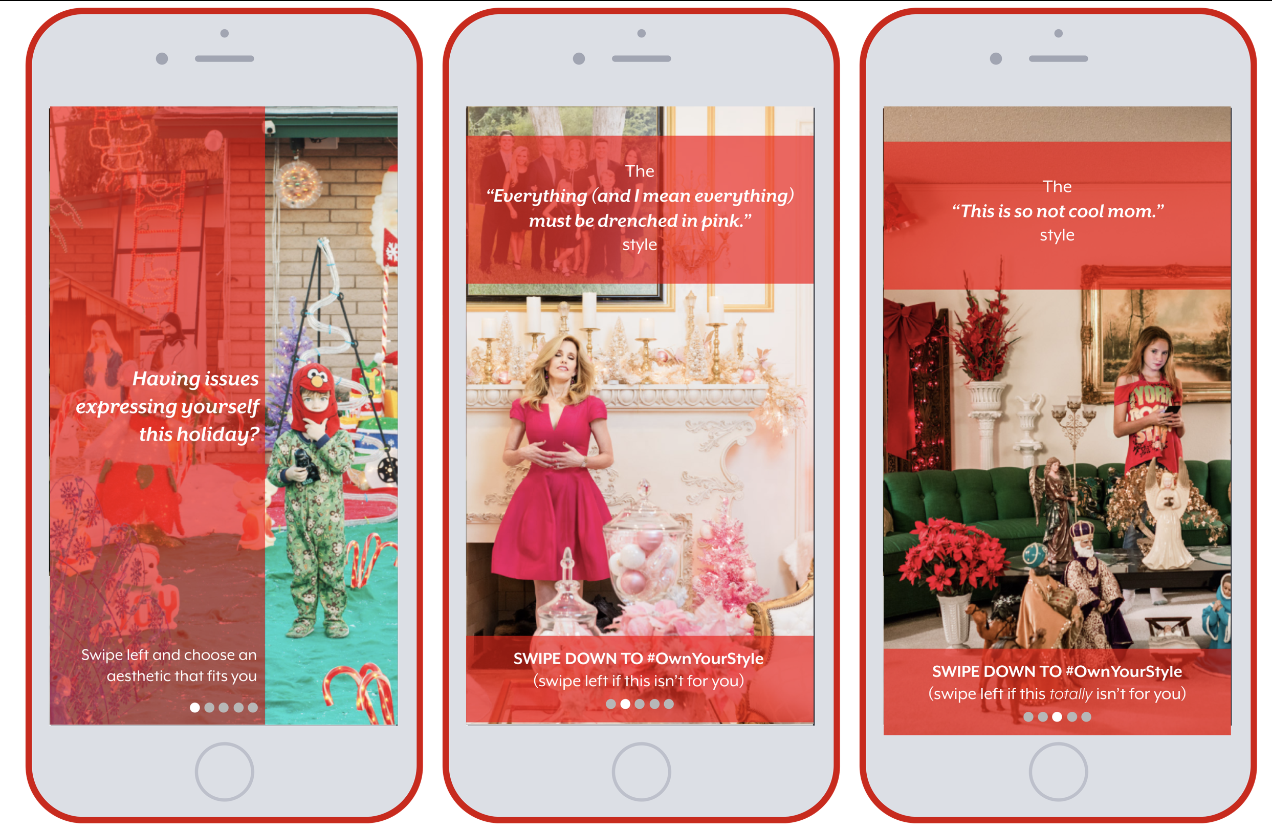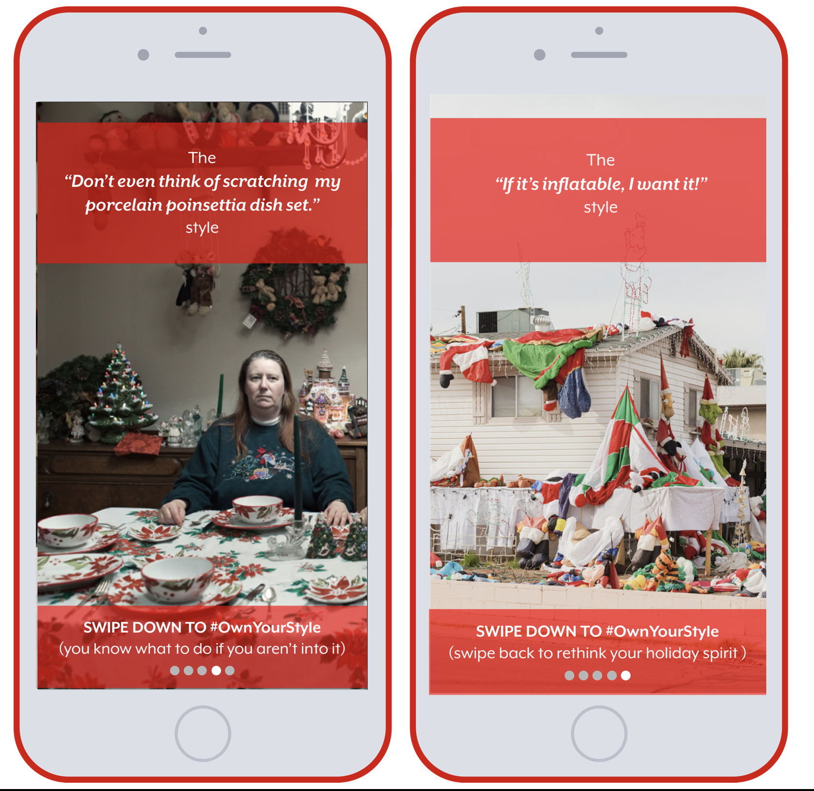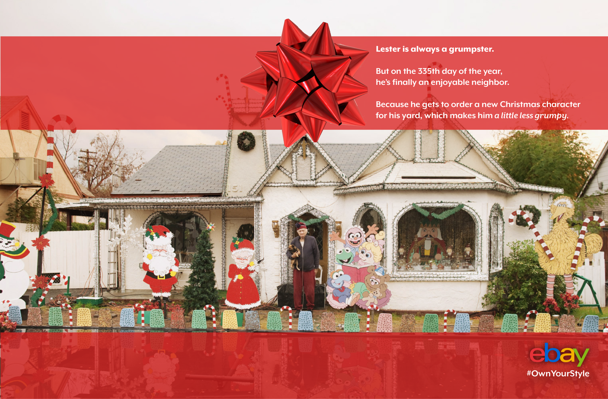 Every Christmas, people all over the U.S. celebrate in unique ways. With the help from Jesse Rieser's photography, I created a campaign showing how people express themselves during the holiday and how eBay helps you "own your style".